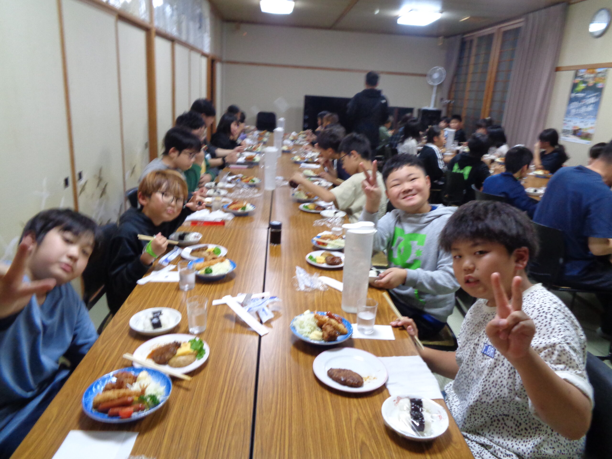 夕食は、時間より前に集合し、予定より早めに食べ始めています。