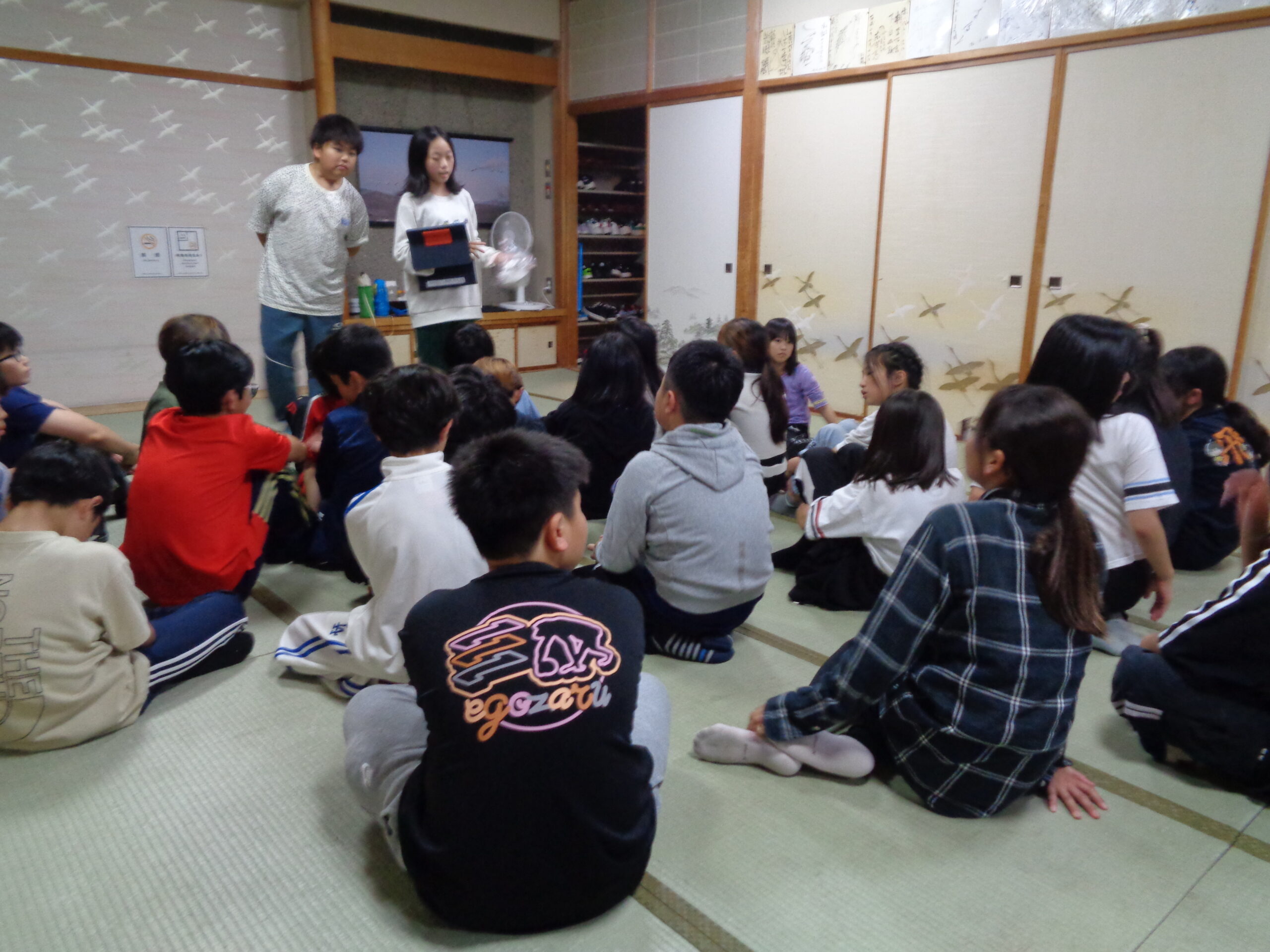 そして、夕食後はレクの時間です。レク係が企画してくれた「ジェスチャーゲーム」は、多少変更がありましたが、大いに盛り上がり良い企画でした。