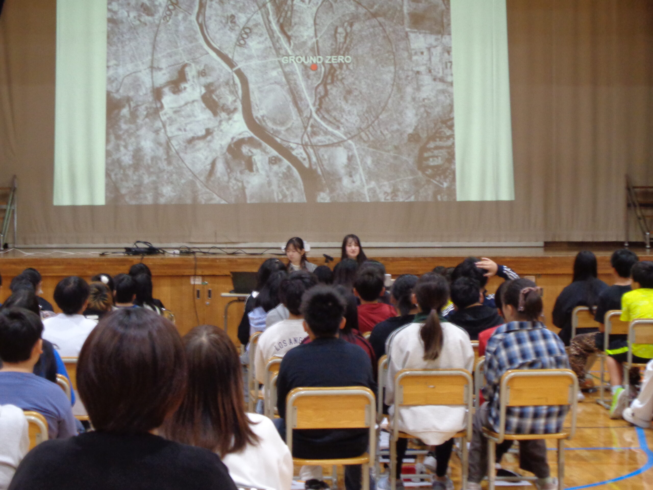 今年も長崎大学の学生さんが遠矢小学校にやってきて4年生以上の学年に向け、「平和授業」を実施してくださいました。