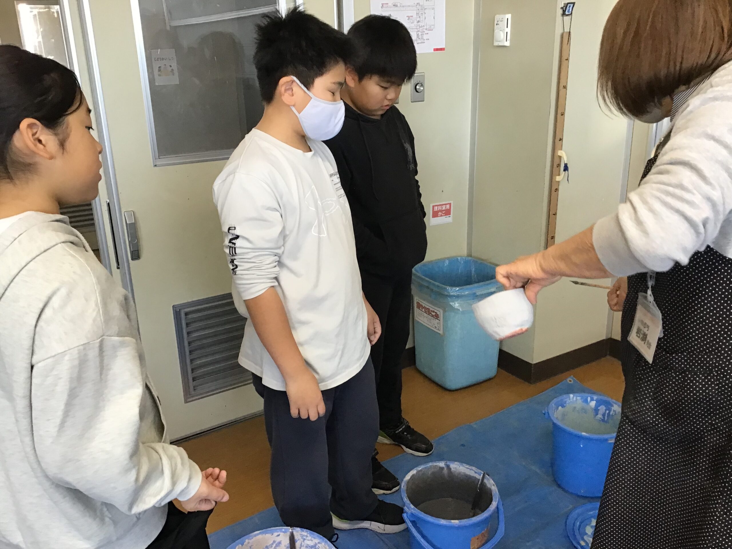 11月20日には、5年生が2回目の陶芸教室に参加しました。